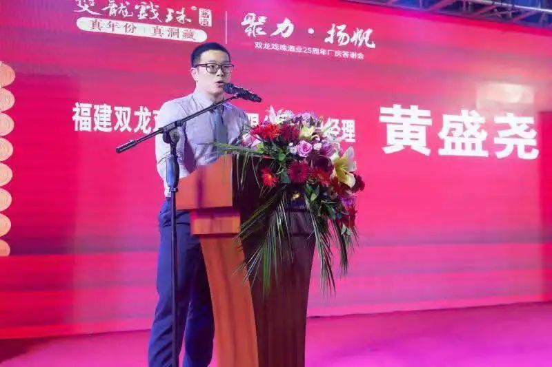 雙龍戲珠酒業(yè)總經理黃盛堯代表雙龍戲珠酒業(yè)全體員工,向出席答謝宴的各位來賓、經銷商表示熱烈的歡迎,向一路相伴和支持的朋友們表示由衷的感謝。