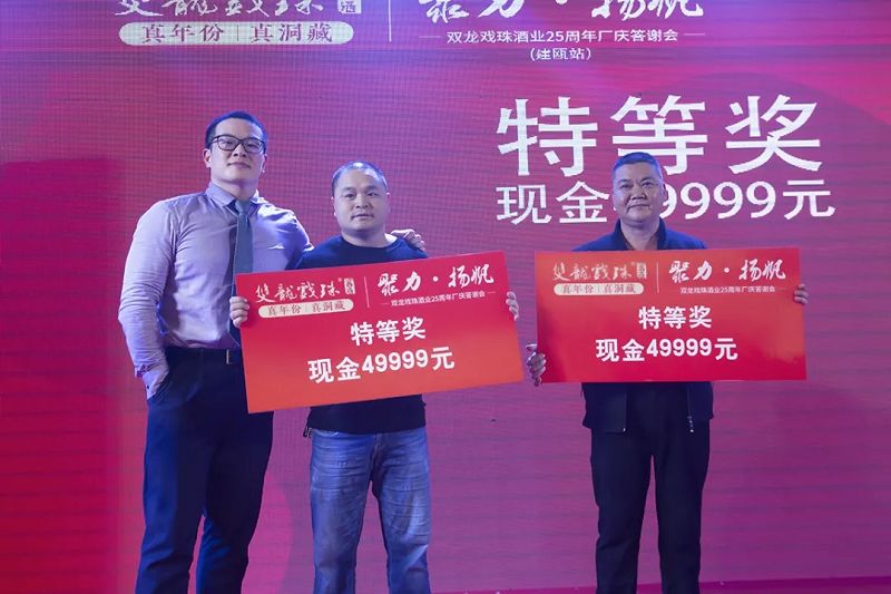 精彩紛呈的文藝表演搭配激動人心的抽獎環(huán)節(jié),讓到場的建甌人民感受到雙龍戲珠酒業(yè)在這個冬天帶來的激情與熱情。隨著本場活動特等獎(49999元現金)得主的誕生,現場氛圍瞬間達到最高潮。值得一提的是,本場活動共設特等獎兩名,以回饋建甌人民對于雙龍戲珠酒業(yè)本次廠慶活動的大力支持。