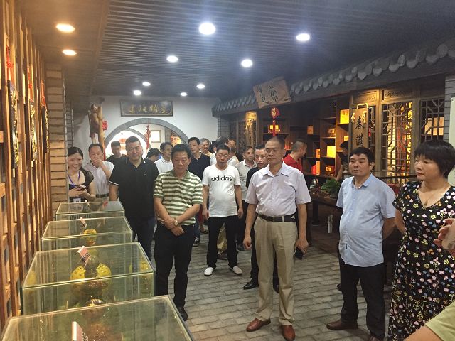 2019年6月28日下午,建甌市政協(xié)副主席、工商聯(lián)主席陳秀機(jī)與各會(huì)員企業(yè)家一行到雙龍戲珠酒業(yè)參觀調(diào)研,在公司董事長黃德鋒及總經(jīng)理黃盛堯的陪同下,相繼參觀了公司的產(chǎn)品展示大廳,白酒傳統(tǒng)釀制工藝,以及貯酒山洞——雙龍洞,與會(huì)嘉賓還品飲了雙龍戲珠白酒。